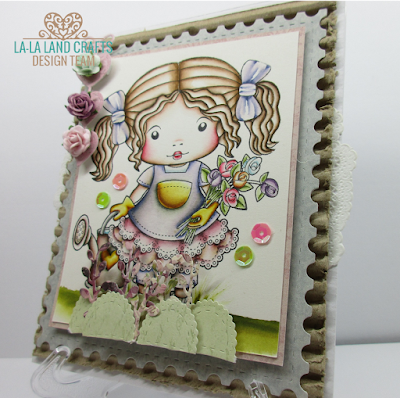 I share another DT Card for La-la Land Crafts and the weekly theme is: One for the girls!!!! So I choose one stamp from Molli, again :) it´s call: "At the Beach Mollie". I use some dies for make my card, and my base.